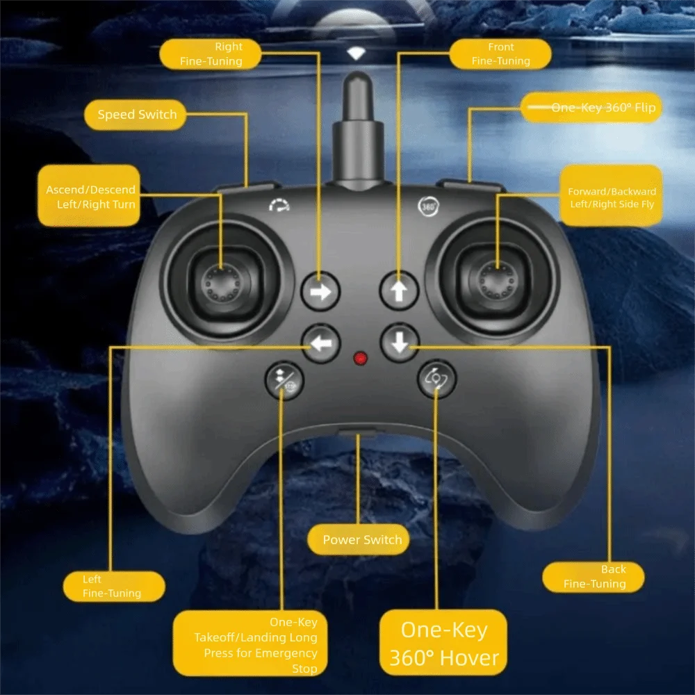 Exciting Movement Capabilities: This kid-friendly drone inches and offers a variety of stunt flying options including 4 turbofan motor,360° flip, headless mode, one click return, emergency stop and basic movements like forward, and side-to-side flight. An ideal gift for birthdays, Christmas, or holidays.