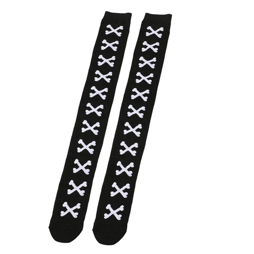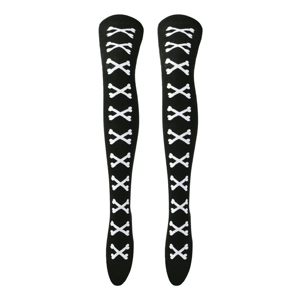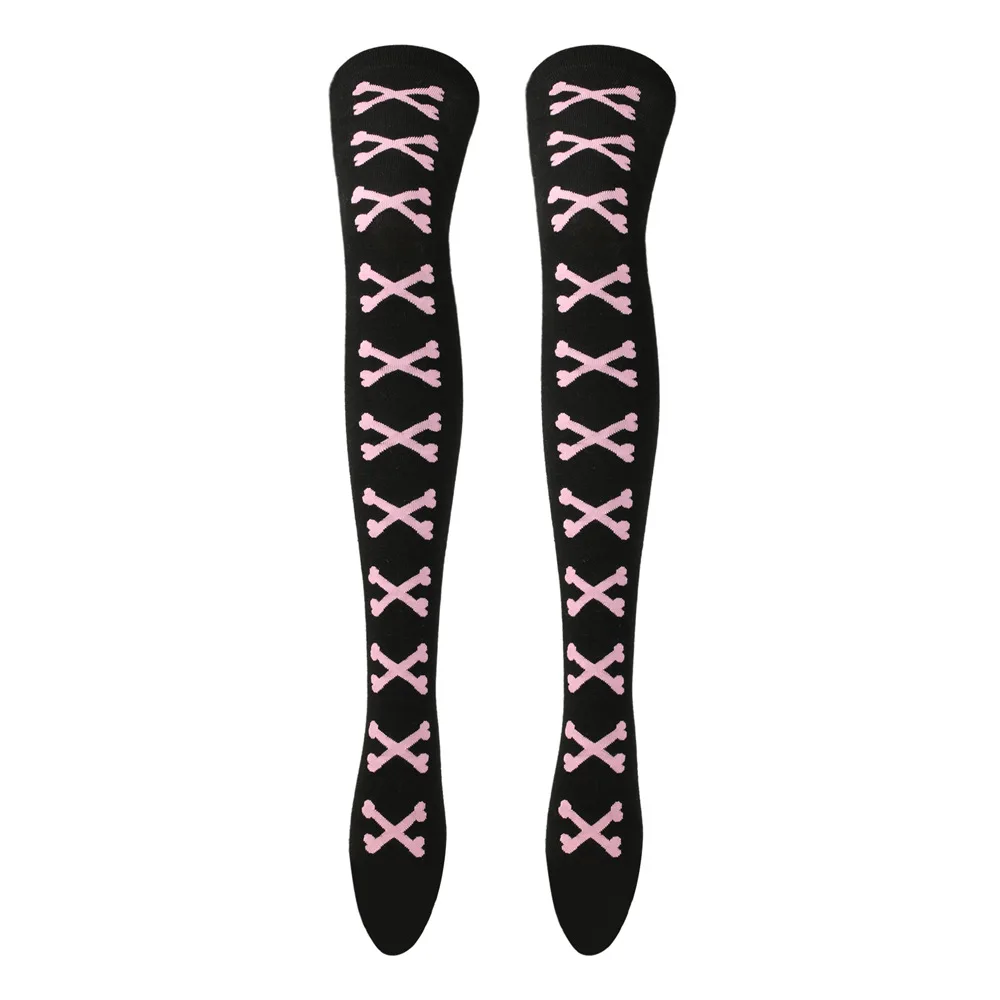 Womens Bone Thigh High Stockings Ladies Halloween Girls Black White Pink Long Over Above Knee Socks Tall Funny Cosplay Harajuku